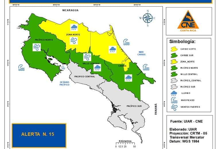 “Establecimos una alerta verde para el Pacífico norte, Valle Central y Caribe sur, mientras que el Caribe norte y Sarapiquí se encuentran en alerta amarilla. Se esperan durante las próximas horas fuertes vientos, lluvias y mareas altas”, dijo Sigifredo Pérez, director de Gestión de Riesgo de la CNE.