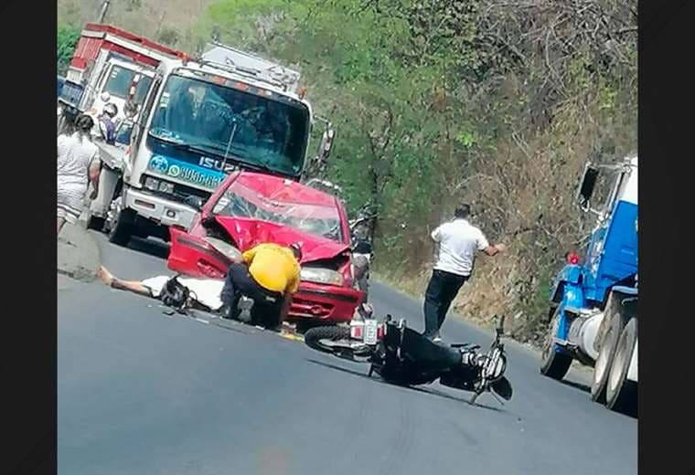 Según testigos, el motociclista chocó de frente contra el vehículo liviano y salió expulsado por varios metros.