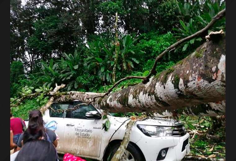 Las imágenes muestran que el vehículo más afectado es del Servicio Fitosanitario del Estado, del Ministerio de Agricultura y Ganadería.