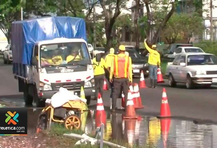 Minutos después de las 7:00 a. m. los trabajadores cerraron por completo el sentido que va de San Sebastián hacia Hatillo, para colocar una tubería que ayude a filtrar el agua.