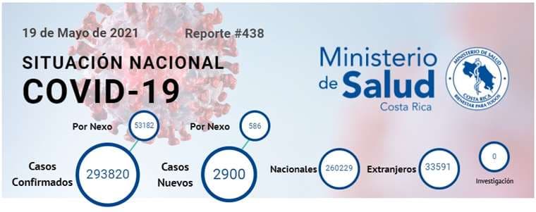 Costa Rica reportó 2.900 casos nuevos de COVID-19 en las últimas 24 horas, llegando así hasta los 293.820 contagios desde que inició la pandemia.