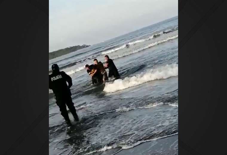 La lancha de Guardacostas llegó al punto donde estaba el hombre y, tras varios minutos de cacería, la Fuerza Pública lo capturó mar adentro.
