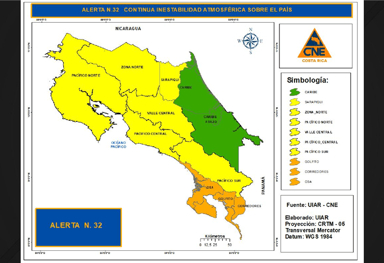 “Por esta razón y sobre todo por la inestabilidad atmosférica tras el paso de la onda tropical número 4 y lo que se prevé para las próximas horas, estamos elevando la condición de alerta a alerta naranja en estos tres cantones", explicó Solís.