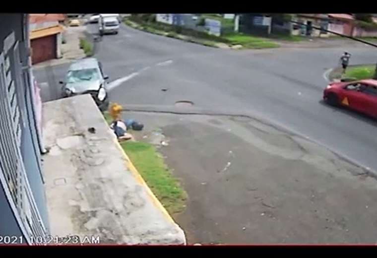 Una cámara de seguridad captó el instante cuando un motociclista es embestido por un vehículo liviano en Barva de Heredia.