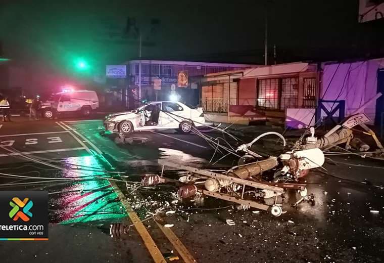 Minutos antes de las 2 a. m., el carro chocó contra un poste del tendido eléctrico. Esa situación provocó que la estructura cayera y, a la vez, arrastrara otra más. Es decir, en total fueron dos postes los derribados.