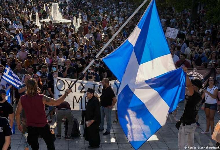 Miles de personas se manifestaron anoche en varias ciudades griegas en la primera protesta multitudinaria antivacunas de la pandemia, contra la decisión del Gobierno de obligar al personal sanitario a vacunarse y limitar los espacios cerrados de la hostelería y ocio para los inoculados.