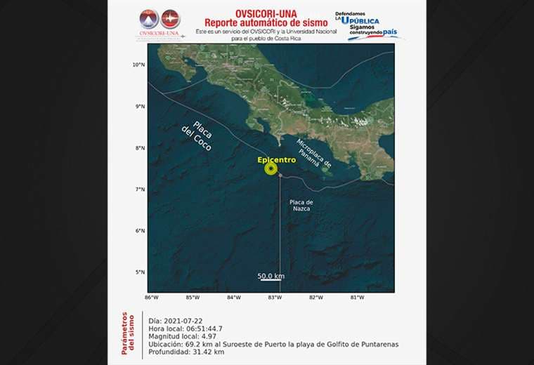 Según el Observatorio Vulcanológico y Sismológico de Costa Rica (OVSICORI), los epicentros se ubicaron a 69.2 y 48.5 kilómetros al suroeste de Golfito de Puntarenas.