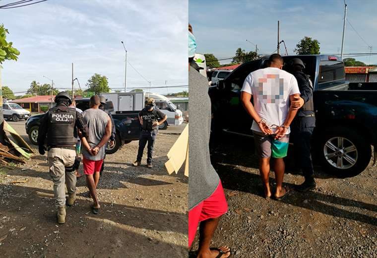 Los agentes del Organismo de Investigación Judicial (OIJ) aprehendieron a estas personas de 26 y 28 años en el sector de El Roble de Puntarenas, por los delitos de lesiones con arma de fuego y daños.