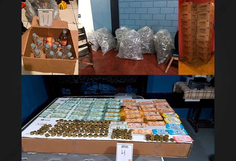 El OIJ decomisó tres camiones que habrían sido utilizados para la distribución del licor en Costa Rica, cinco millones de colones en efectivo, seis estañones que, al parecer, contienen etanol puro al 96% y 600 cajas con 24 unidades de licor, cada una, listas para la venta.