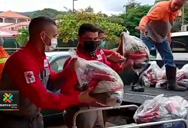 Alimentos y kits de aseo personal llegaron en unidades de Cruz Roja y carros de la Comisión Nacional de Emergencias.