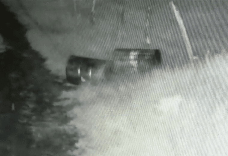 Una cámara de vigilancia, instalada por la Policía Municipal de San Pablo de Heredia en el botadero clandestino Las Cruces, captó el instante cuando un hombre y una mujer tiran dos estañones con aceite y luego se van de dicho lugar.