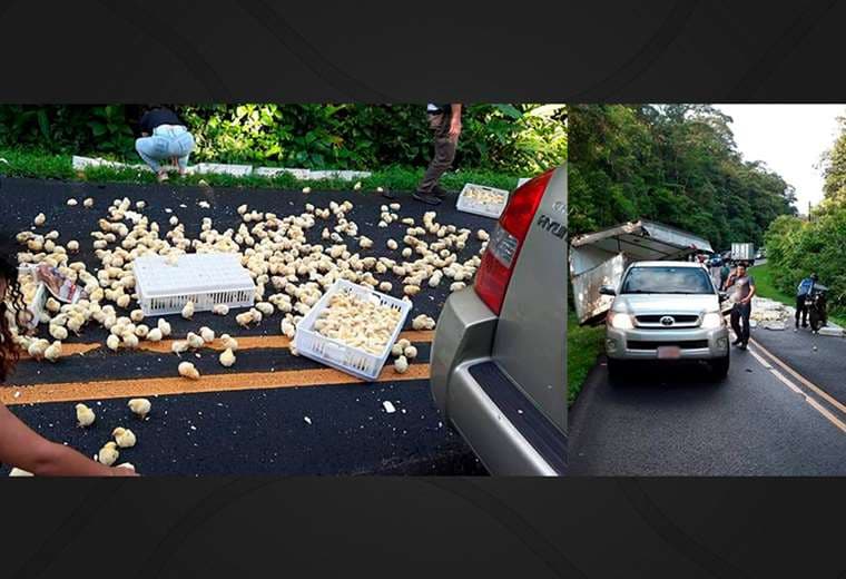 Video: cientos de pollitos salen “volando” tras aparatoso accidente en Alajuela
