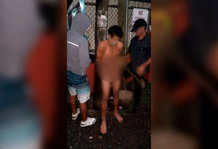 “Ante la alerta, se envía una unidad policial. Los oficiales ubican a un sujeto de 19 años amarrado al poste del tendido eléctrico, aparentemente, varios vecinos lo dejaron amarrado y desnudo, ya que intentó robar en la iglesia, según manifestó el joven a los oficiales. En el lugar no había ninguna persona cuando llegó la patrulla”, dijo el Ministerio de Seguridad Pública.
