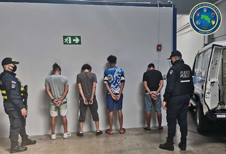 Cuatro jóvenes fueron capturados por oficiales de la Fuerza Pública, este jueves, como sospechosos de robar un contenedor con mercadería valorada en ₡180 millones.