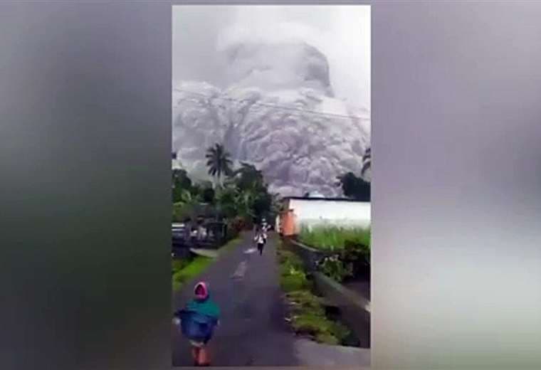 Un video publicado por la agencia muestra a los vecinos, incluidos muchos niños, refugiándose después de la erupción del monte Semeru a las 15H00 hora local (07H00 GMT) este sábado.