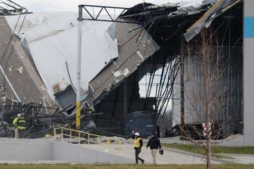Otro tornado golpeó un almacén de Amazon en la ciudad de Edwardsville, sur de Illinois, que se redujo en gran parte a escombros. Alrededor de 100 trabajadores quedaron atrapados en el interior, dijo la policía, citada por medios locales.