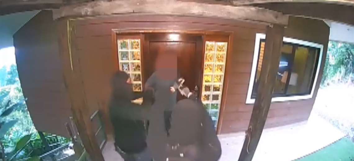 Las cámaras de seguridad de la propiedad captaron el momento en que los antisociales ingresan al inmueble. En las imágenes se puede observar cómo sorprenden al extranjero, quien al notar su presencia reacciona con un grito de desconcierto antes de ser sometido.