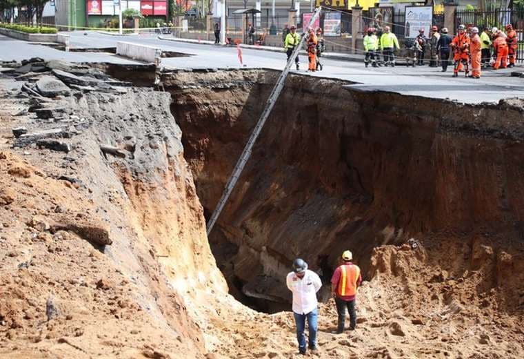 Desesperada búsqueda de madre e hija que fueron “tragadas” por un enorme socavón en Guatemala
