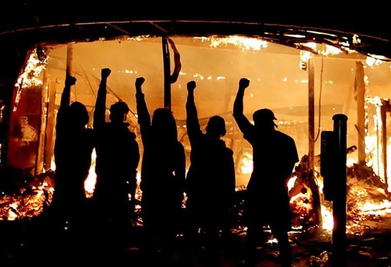 El cordón de seguridad alrededor de la estación de policía fue finalmente superado por los manifestantes, que le prendieron fuego al igual que a otros dos edificios cercanos, cuando los agentes se retiraron.