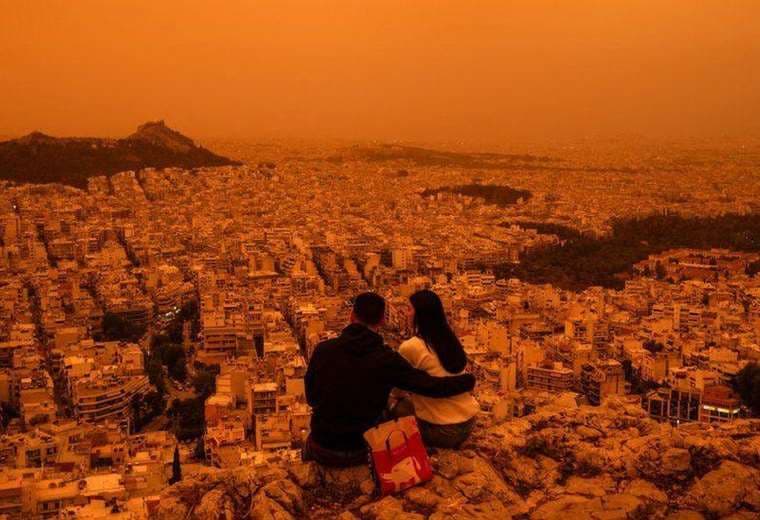 Una dramática neblina anaranjada descendió sobre Atenas con nubes de polvo que llegaron desde el desierto del Sahara.
