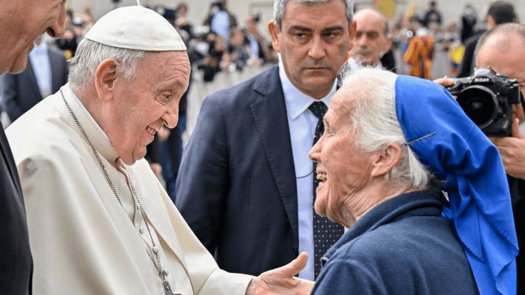 "El 20 de abril de 2013, nos invitaron a una misa en (la residencia) Santa Marta (donde vivió y murió el pontífice argentino); después de la misa, el Papa nos dio la bienvenida y me besó", narró la anciana religiosa.