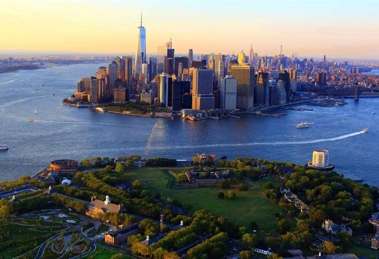 Los altísimos rascacielos de cristal, acero y hormigón se alzan sobre el puerto de color pizarra. Luego, solo ocho minutos después, llegas a tu destino: una isla de 70 hectáreas a solo 730 metros de la metrópolis más grande de EE.UU., y la ciudad se te va de la mente.