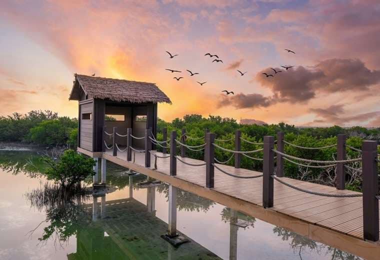 Está completamente rodeada de manglares, y alberga una gran variedad de aves, incluidos flamencos, y animales marinos, así como pequeñas playas y estanques naturales de sal.