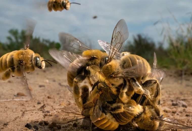 El pasado 11 de octubre Aigner fue galardonada por haber capturado con su lente el momento en que varias abejas machos se abalanzan sobre una hembra, que estaba en un cactus, para intentar aparearse con ella.