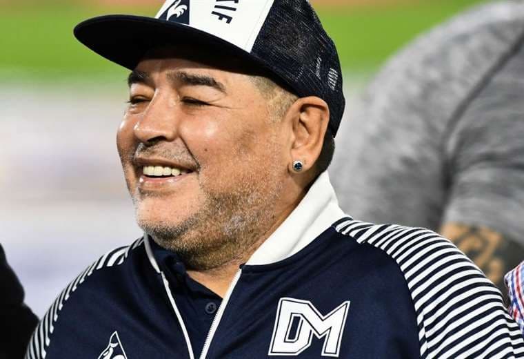 Maradona apenas pudo estar unos minutos en el césped del estadio de Gimnasia, el equipo que entrena actualmente, para recibir el homenaje de la afición local por su 60 cumpleaños. Se le vio con grandes dificultades para caminar.