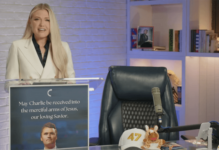 En un discurso cargado de emociones, con lágrimas y cambios en el tono de voz, con un crucifijo colgado del cuello, Erika Kirk hizo numerosas menciones a su fe en Dios.