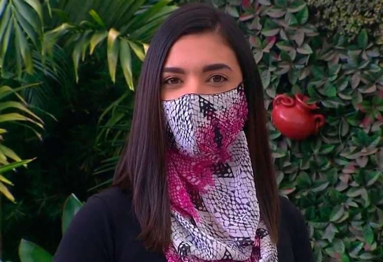 Se trata de una mascarilla- bufanda, que nos mostró la emprendedora Evelyn Rivera.