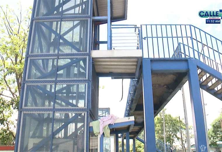 En la Sabana hay otro puente, ubicado frente al Colegio de Periodistas. Carlos Muñoz prefiere cruzar en el semáforo para no recorrer la pasarela. Lo que era un ascensor, hoy es un botadero e, incluso, un equipo de Calle 7 Informativo captó a un indigente tapado con bolsas plásticas, durmiendo entre la basura.
