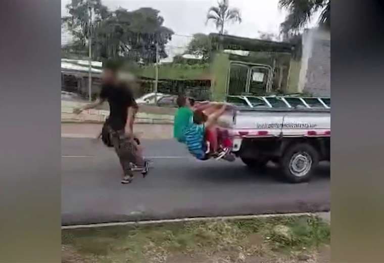 La calle al frente del CTP Roberto Gamboa en San Rafael Abajo es utilizada por un grupo de menores de edad, quienes se cuelgan de la parte trasera de los vehículos que pasan por esta vía.