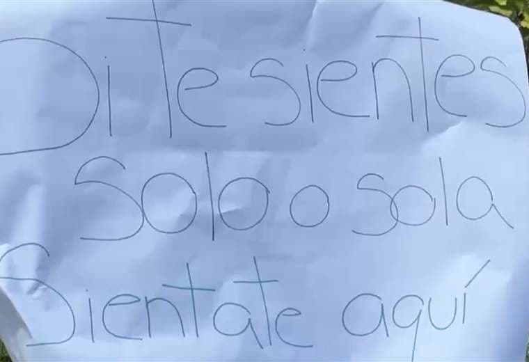 “Aquí no es jodiendo a nadie, ni molestando a nadie. No tengo familia, no tengo apoyo”, comentó una de las personas que se sentó junto al letrero.