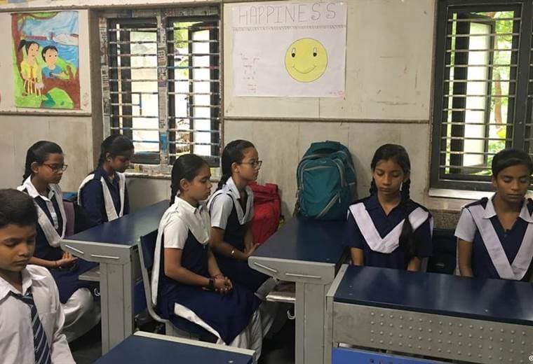 Para ayudar a los escolares a sobrellevar el estrés, las escuelas públicas de Nueva Delhi han agregado una nueva asignatura a sus clases.