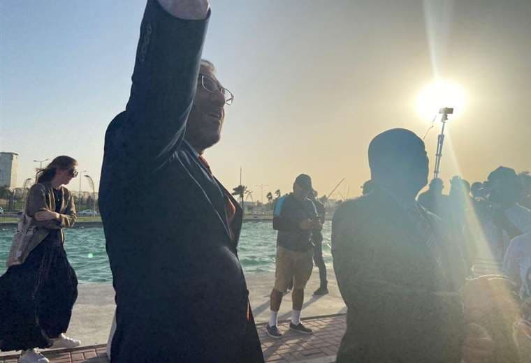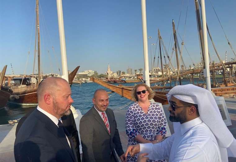 La ceremonia del izado de la bandera se llevó a cabo este jueves en la Plaza de las Banderas en el Corniche, justo donde está el reloj contador de días restantes para el próximo Mundial.
