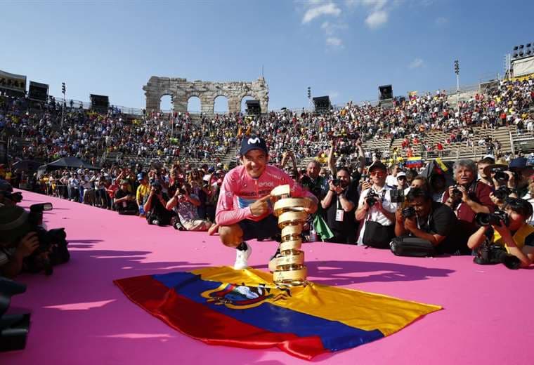 La 'Locomotora de Carchi', de 26 años, sorprendió a los favoritos para llevarse la preciada 'Maglia Rosa', cima de una meteórica ascensión desde que saltara a Europa en 2017 captado por el equipo Movistar. Fue el primer sudamericano, no colombiano, en ganar una gran vuelta.