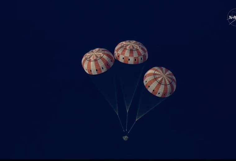 Trece minutos separaron el reingreso atmosférico del amerizaje en el Océano Pacífico, frente a la costa de San Diego, California, donde un buque de la Armada de los Estados Unidos recuperará a los astronautas, quienes pasaron por detrás de la Luna el lunes.