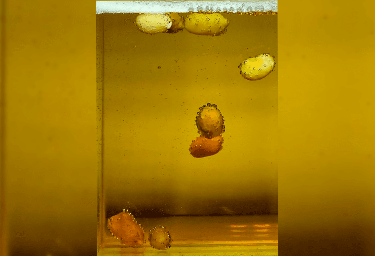 Esas burbujitas provocan el ascenso de la legumbre. Al entrar en contacto con el aire, estallan, y el proceso vuelve a reproducirse.