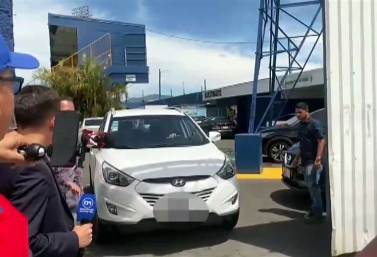 Un reducido grupo de aficionados blanquiazules esperó la salida del vehículo para gritar “ladrones” y otras ofensas, pues a su criterio solo se quiere perjudicar al club con el cierre de su estadio.