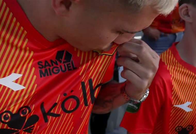 El defensor Fernán Faerron besó el nuevo uniforme del Herediano.