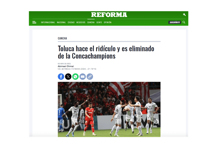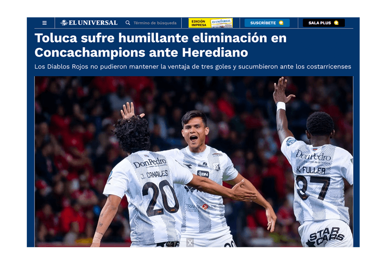 Otro de los medios que dieron a conocer la noticia fue El Universal que título “Toluca sufre humillante eliminación en Concachampions ante Herediano”.
