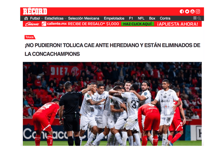 “¡No pudieron! Toluca cae ante Herediano y están eliminados de la Concachampions”, así tituló el diario Récord, uno de los medios deportivos más reconocidos.