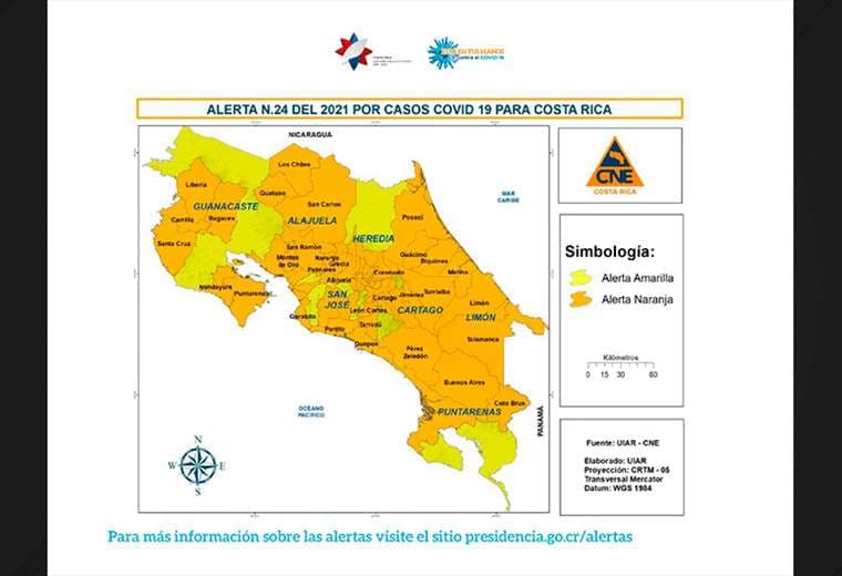 En total, hay 65 cantones en alerta naranja por su condición epidemiológica.