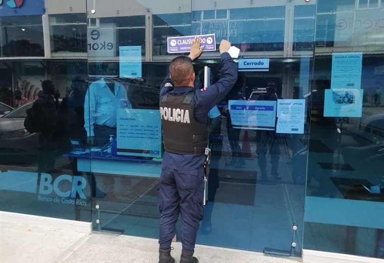 Este lunes en horas de la tarde el Ministerio de Seguridad Pública clausuró la sucursal bancaria del Banco de Costa Rica (BCR) en Cariari de Pococí luego de constatar que en las afueras había una aglomeración de personas, incumpliendo así las medidas sanitarias dictadas por el Ministerio de Salud ante la emergencia nacional por Covid-19.