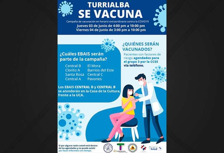 Se trata de la campaña Turrialba se vacuna, organizada por el Comité Municipal de Emergencias, la Dirección Médica del Área de Salud y la Alcaldía Municipal.
