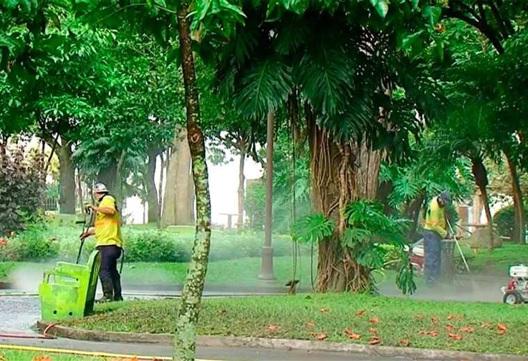 Algunos parques en San José se están llenando de musgo y algas por la falta del paso de personas.