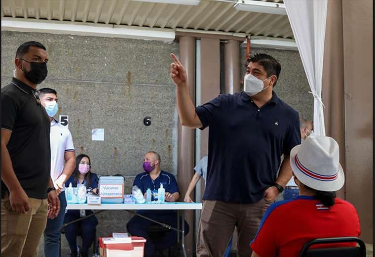 El presidente de la República, Carlos Alvarado, visitó el vacunatorio que se llevó a cabo en San Sebastián por parte del Área de Salud de Paso Ancho, este sábado