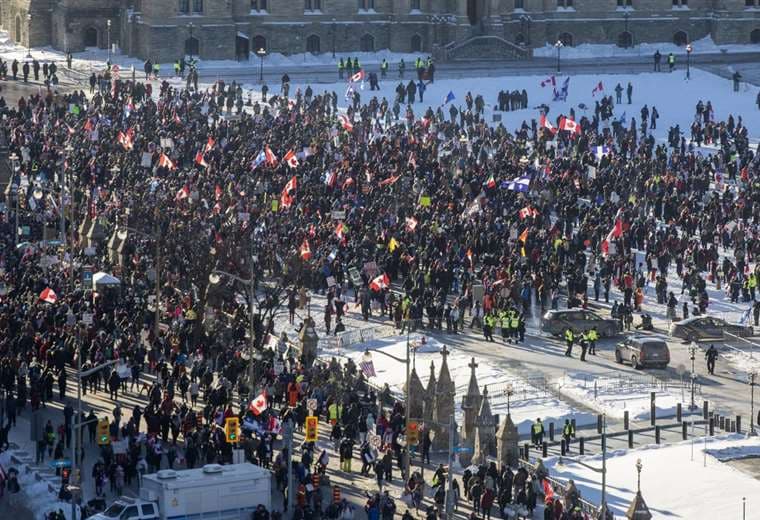 Durante el fin de semana la capital canadiense recibió un gran movimiento de protesta iniciado por camioneros que se oponen a la obligación de vacunarse para atravesar la frontera terrestre con Estados Unidos, la más larga del mundo.