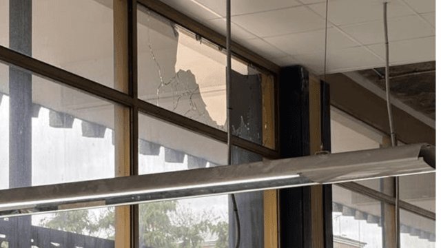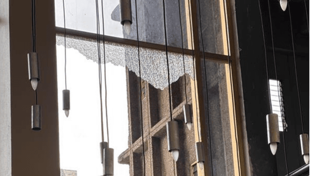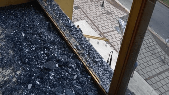 El ataque no dejó personas heridas, pero sí afectaciones visibles en al menos cinco ventanales.